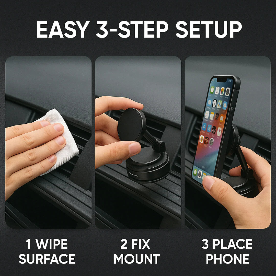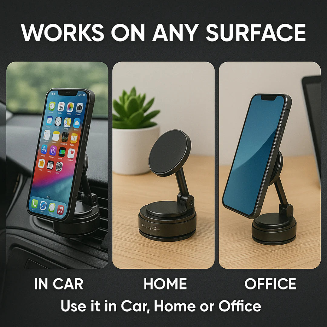 Say goodbye to unstable phone holders that fall off mid-drive or block your view. Introducing the Vacuum Magnetic Car Mount Phone Holder — a next-generation phone mount designed for Indian roads, chaotic traffic, and everyday use. This innovative accessory combines the latest vacuum suction technology with strong magnetic power to provide you with a rock-solid, hands-free experience.